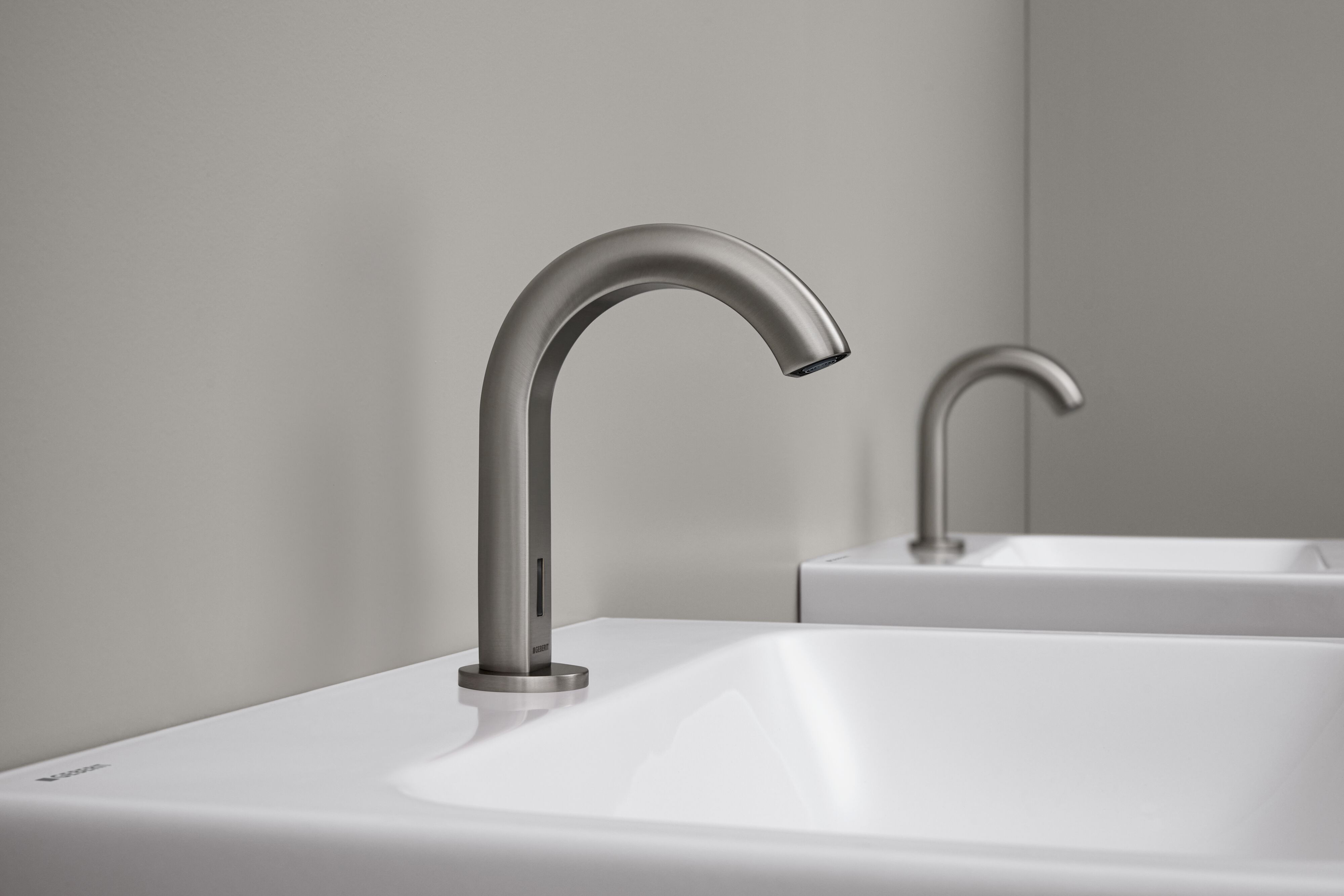 Los grifos electrónicos para lavabos Geberit Piave, diseñados por el estudio de diseño londinense, Christoph Behling Design, se caracterizan por su forma estilizada y atemporal. Ambos están disponibles como grifos murales o sobre encimera y se pueden combinar prácticamente con cualquier diseño de lavabo. Para cubrir la demanda de las numerosas combinaciones posibles, los grifos murales están disponibles en longitudes de 170 mm y 220 mm. El cuerpo de los grifos está hecho de latón cromado. Su característica distintiva: el agua se transporta a través de un tubo reforzado de plástico que va desde la unidad funcional en la caja de registro hasta el aireador de la salida del grifo. De esta forma se garantiza que la calidad del agua potable no se vea reducida en ningún punto.